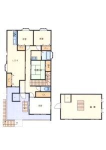| 建物面積 | 1階:127.48㎡ 2階:142.23㎡ 3階:109.80㎡ 4階:47.68㎡ 合計:427.19㎡(129.22坪) |